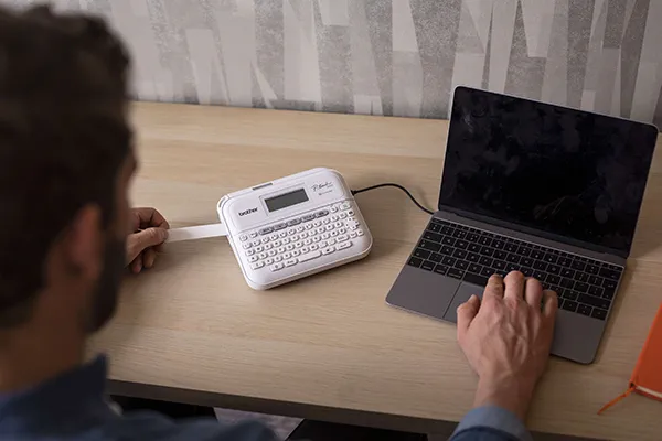 PT-D410 label printer is perfect for straightforward standalone use. It can also be connected to a computer via a USB connection to print labels.