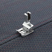 This compensating presser foot is useful for sewing pintucks and for finishing seams by edge-stitching and topstitching seam allowances folded over to one side.